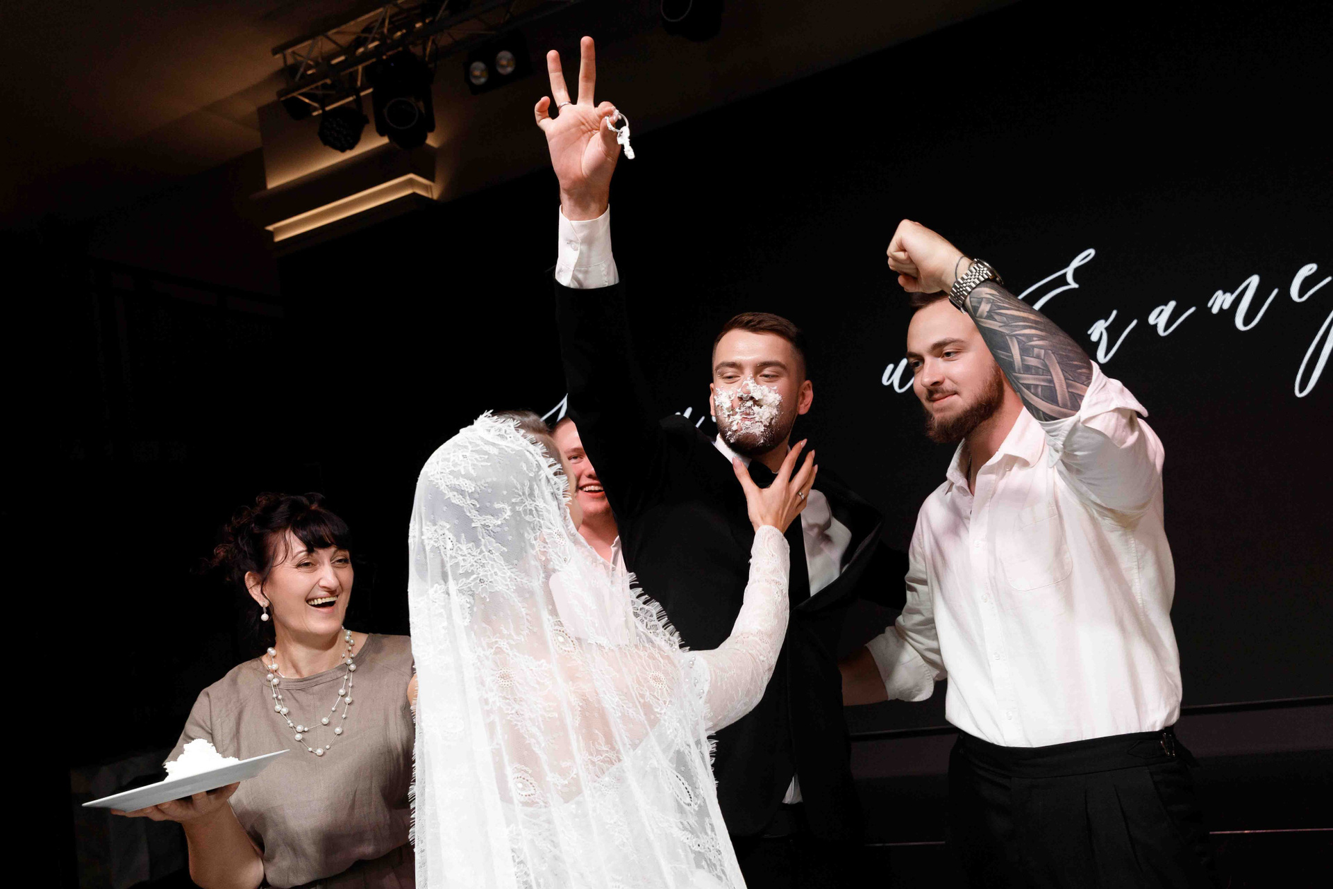 Как вкусно в Кирилле и Кате сочетаются королевская стать с натурой весельчаков! Днем они грациозно прогуливаются вдоль дворца в статном смокинге и роскошном платье с фатой уходящими за горизонт, рассказывают друг другу о любви, а вечером пятками прожигают танцпол с близкими под «малый повзрослел» Макса Коржа.